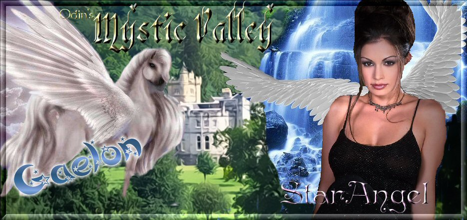 Mystic Valley closely resembles Earth from its plant life to its various animals however, with twin moons rising every six months which have an unusual effect on the valley's residents it is obvious once you are here how very different from earth this place really is. The Mystical Gardens room has a GOTO PD inside which we call the portal to the valley which lies behind the cottages back wall. If you have no magical ability you'll never see the gardens if you are there for introduction of role play into Mystic Valley. The Gardens are used in RP for those who are to be invited into the Valley on Stars invite. As you enter the portal it dumps you out in the castle's main courtyard. Walking down the road to the south you will come across the town of Mystic Valley. You will find the market place, the magick shoppe, the Mystic Valley Bed and Breakfast as well as the first building Star built which is called Fairy Wings Tavern Owned and operated by The Pillywiggin Fae, Queen Devolyn and Princess Shaylee who also happen to be under the Guardianship of Star Angel being given the duty of insuring their race survive since they are the very last of Pillywiggin. Going northward you see a small path leading into the wilderness. Continuing on this path you will come across Mystic Lake. Mystic Lake has a waterfall which empties into it from above the cliffs and just behind the flowing water is the entrance to a cave. Continuing on the road which brought you to Mystic Lake you will come to a fork. One part leads you Northwest into the Dryads meadow and the other leads you North East into an area we call Fae Glenn which is now only home to various animals and Charlie the Leprechaun has his hut hidden somewhere there as well. There are mountain goats about on the cliff grazing there above the Shoreline. There are various Deer and Elk about the meadow as well. Various birds which adorn the skies and the sunset is often purple in summer. StarAngel is a Parasim who is not only guardian of the Pillywiggin but also guardian of this Valley, on Odin's invite since the valley was created by the Norse God himself. While most angels are either Lawful Good or Fallen becoming then neutral at best or evil most Parasim angel's are chaoitc good in that they will not follow the law to the letter instead making their own choices if it serves the good of this valley and its inhabitants. Parasim's are also known as Heaven's Calvary being known as the Angels of Equines, bursting into song to increase morale in battle as well they rarely shut up. StarAngel is the RC of this room as well as the entire realm. ALL mods in this realm WILL mod the roleplay as they see fit.